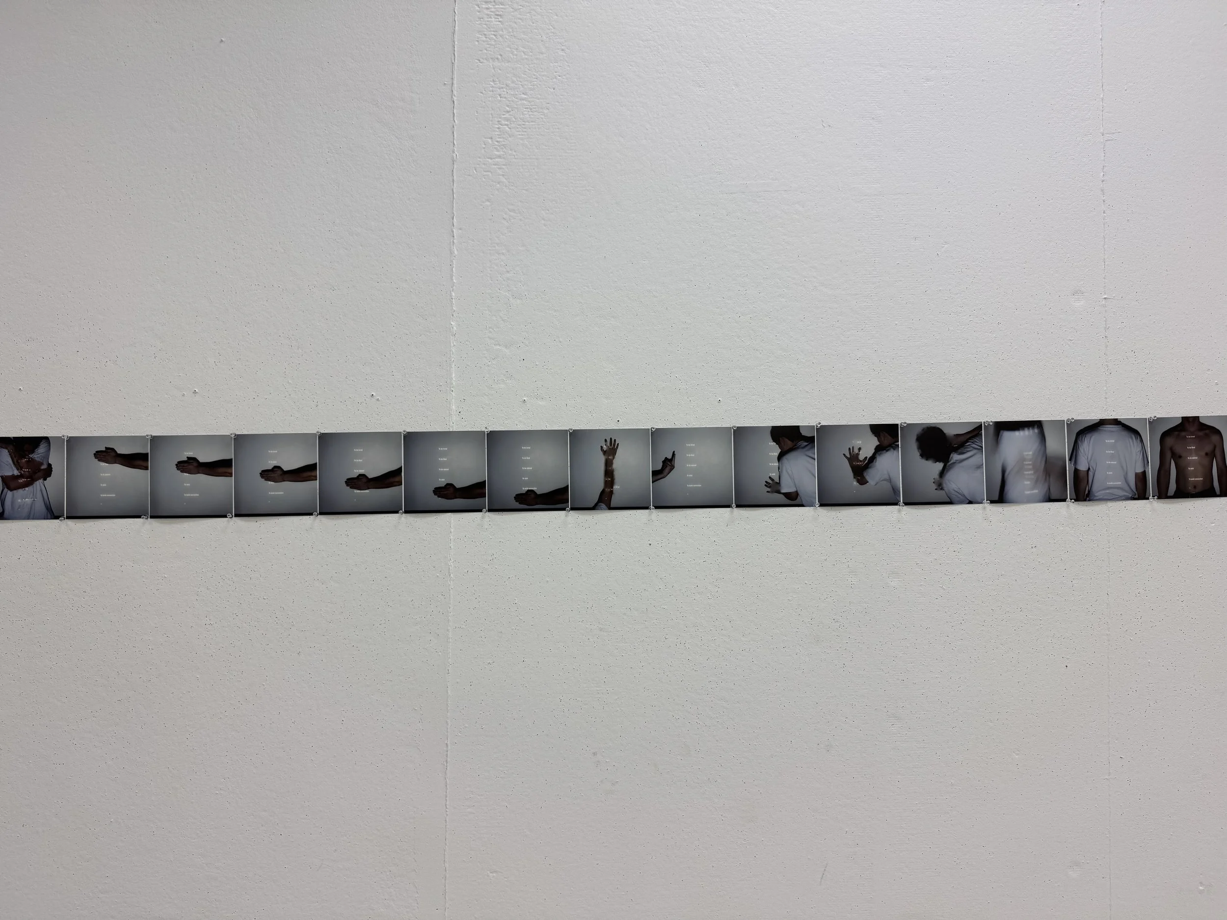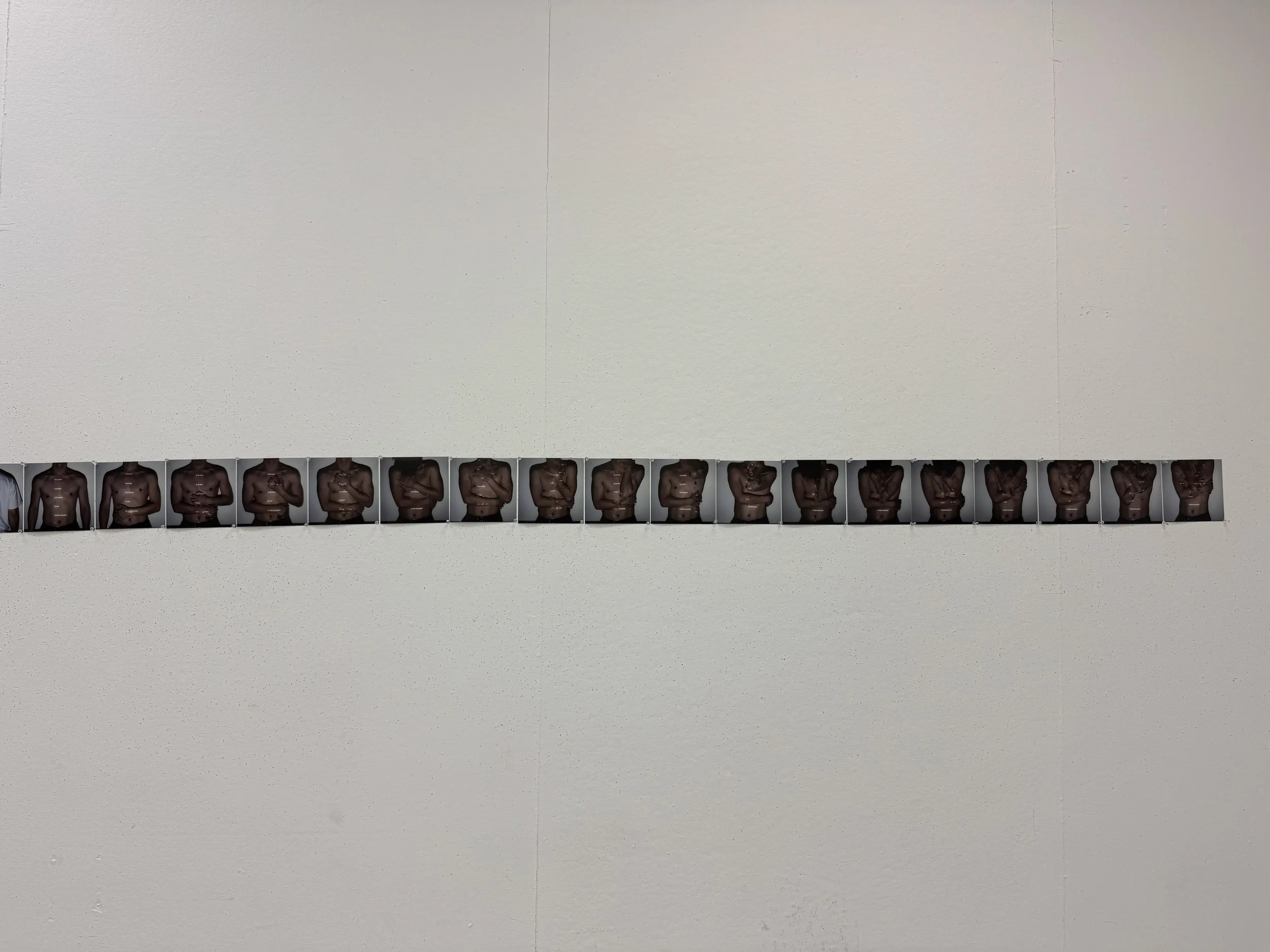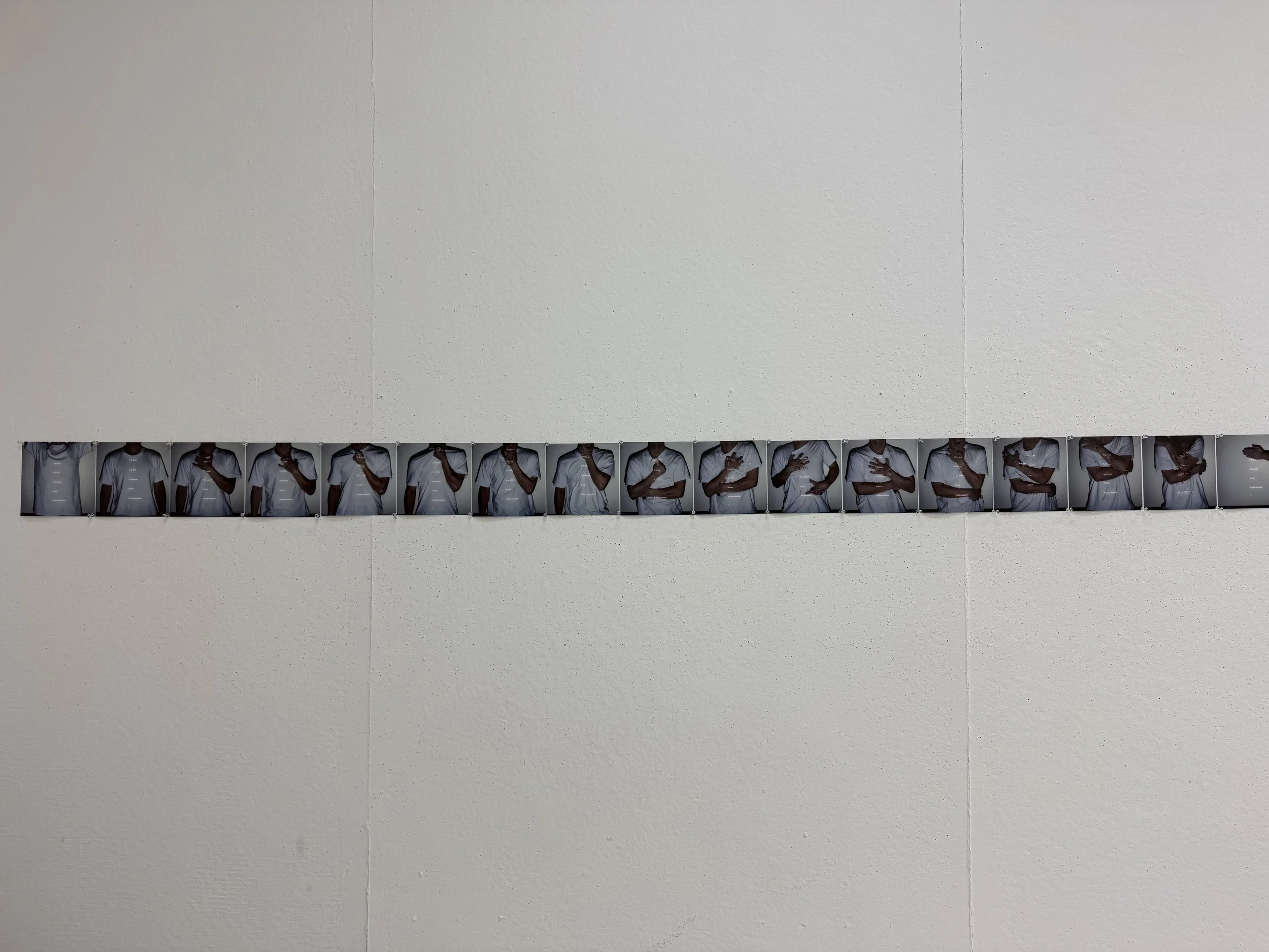 To Be Seen is a photo installation of 47 sequential self-portrait images exploring the tension between the desire for connection and the erosion of self that often follows. Projected words “To be loved,” “To be liked,” “To be adored,” “To exist,” “To build connection,” and “…” anchor the work in the language of validation, while the photographed gestures hugging, clawing, and choking visualize the emotional toll of striving to be understood. As the images progress, physical distortion through Photoshop and motion blur mirrors the breakdown of identity under pressure. The shift to shirtless, increasingly abstract portraits marks a stripping away of external identity, exposing raw vulnerability. Intimate in scale and cyclical in layout, the installation invites viewers to step in close, reflecting how self-worth and connection are deeply entangled and constantly shifting.